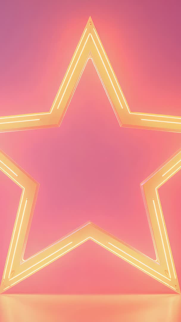 AI Generated Image. Showing glowing neon star outline floating above reflective floor against pink purple gradient backdrop. Emphasizing luminous edges, soft reflections, and clean five-point geometric composition. Working for loopable vertical video in mobile ads, Instagram Stories, TikTok intros, or event promo screens. Providing ample negative space for bold text overlays, logos, or animated typography. Fitting beauty, fashion, entertainment, nightlife, and tech campaigns seeking modern, vibrant visual. Offering easy color grading and seamless integration into motion graphics, title sequences, and social reels.