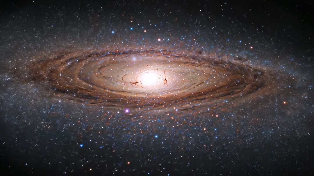Approaching Rotating Spiral Galaxy Revealing Bright Core and Dusty Spiral Arms Video