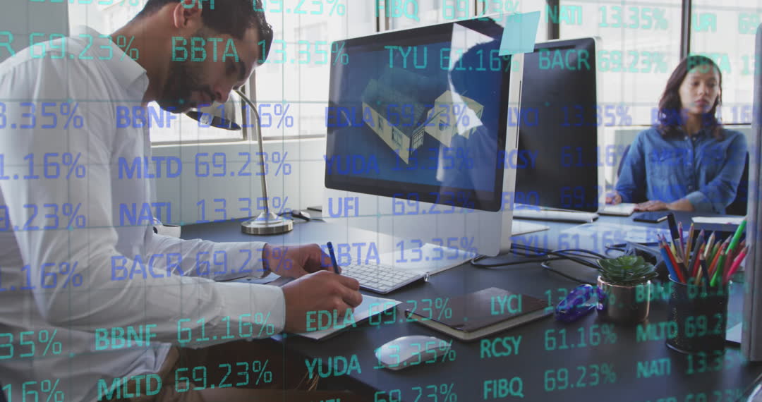 Architect Planning Project in Office Amid Digital Trading Graphics Video