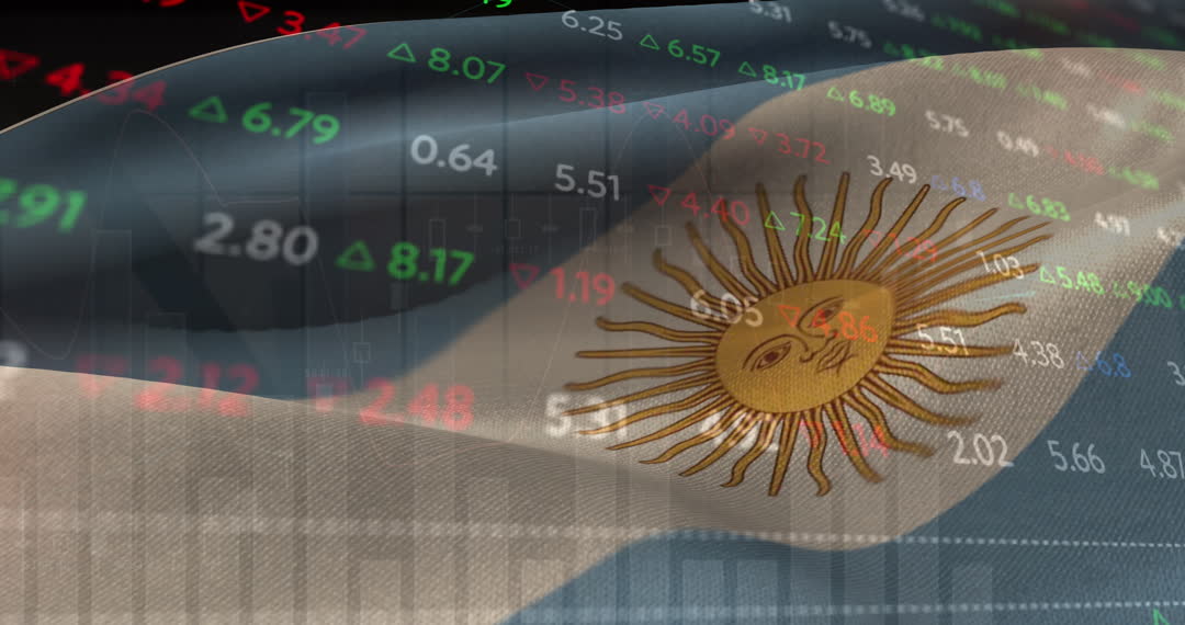 - Argentinian Flag Overlaid with Stock Market Data Trends