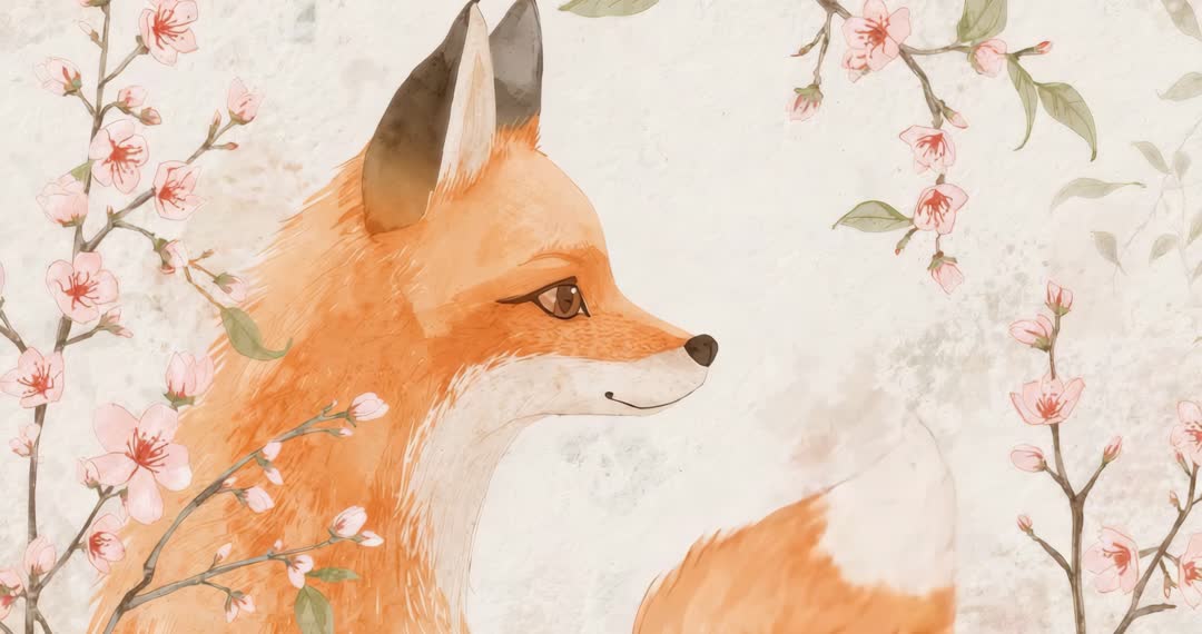 - Artistic Watercolor Fox Amidst Cherry Blossoms Animation