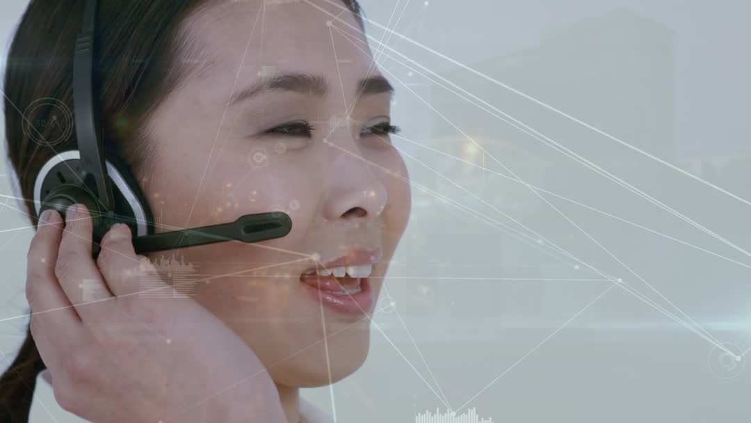 - Asian Customer Service Operator with Innovative Tech Overlay