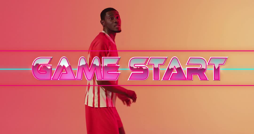 Athlete in Red and White Standing with Neon Game Start Graphic Video