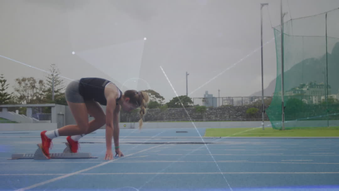 - Athlete Preparing for Race on Blue Track with Geometric Animation