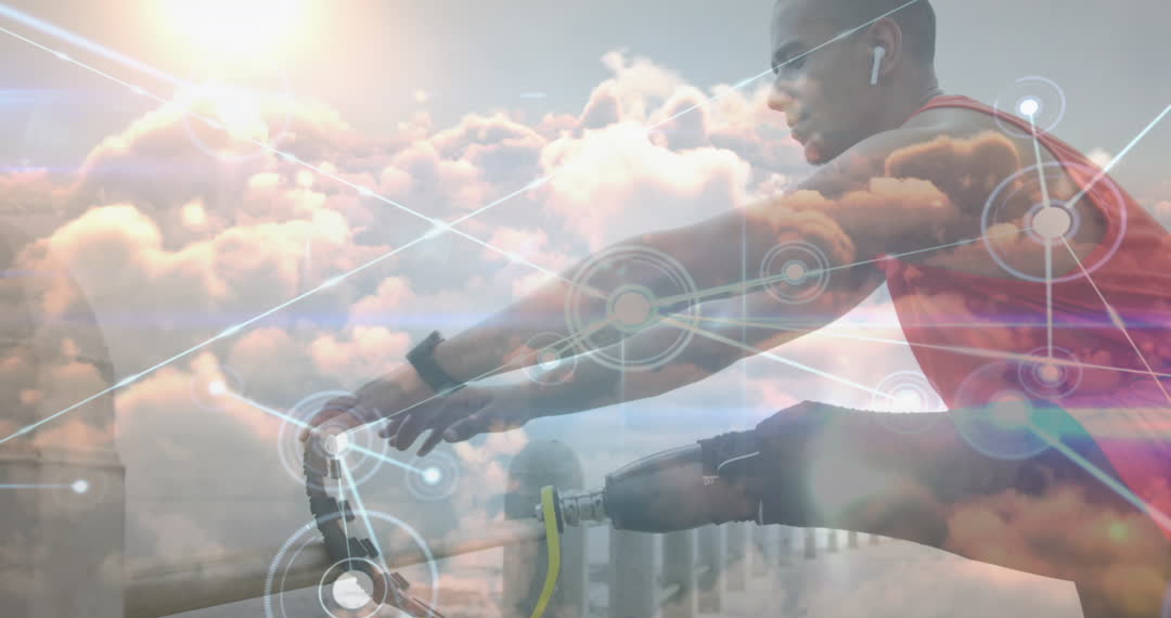 - Athlete with Prosthetic Leg Stretching and Technological Network Overlay