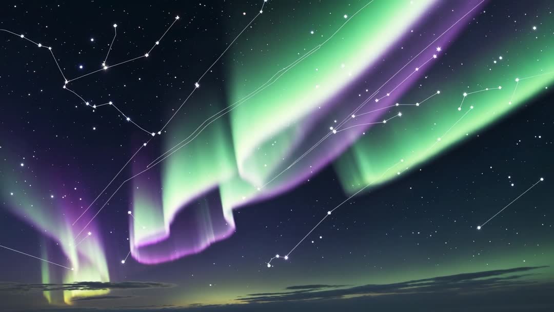 - Aurora Borealis Illuminating Night Sky with Constellations