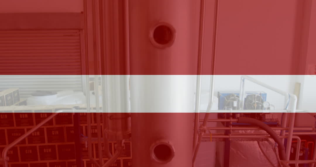 Flag of Austria digitally overlays an industrial factory setting, blending national identity with industrial prowess. This concept highlights themes of international politics and economic industry within a modern world framework. Suitable for use in articles or videos about Austria’s impact on global industry, political discussions featuring Austria or European manufacturing topics.