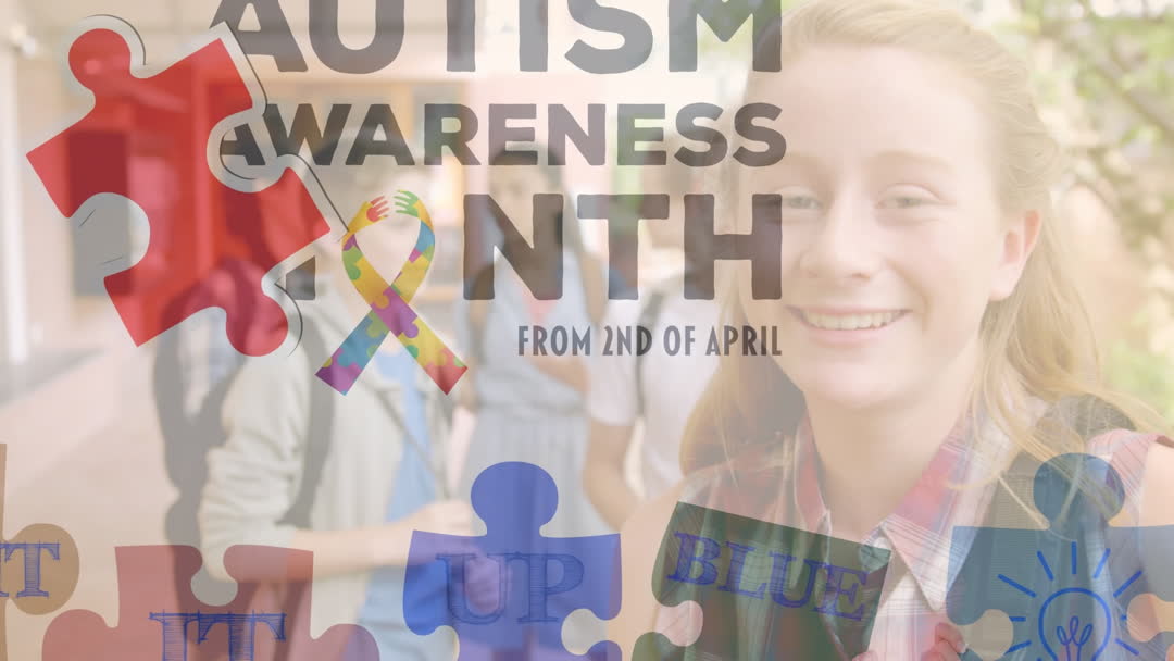 - Autism Awareness Month Animation with Puzzle Pieces and Children