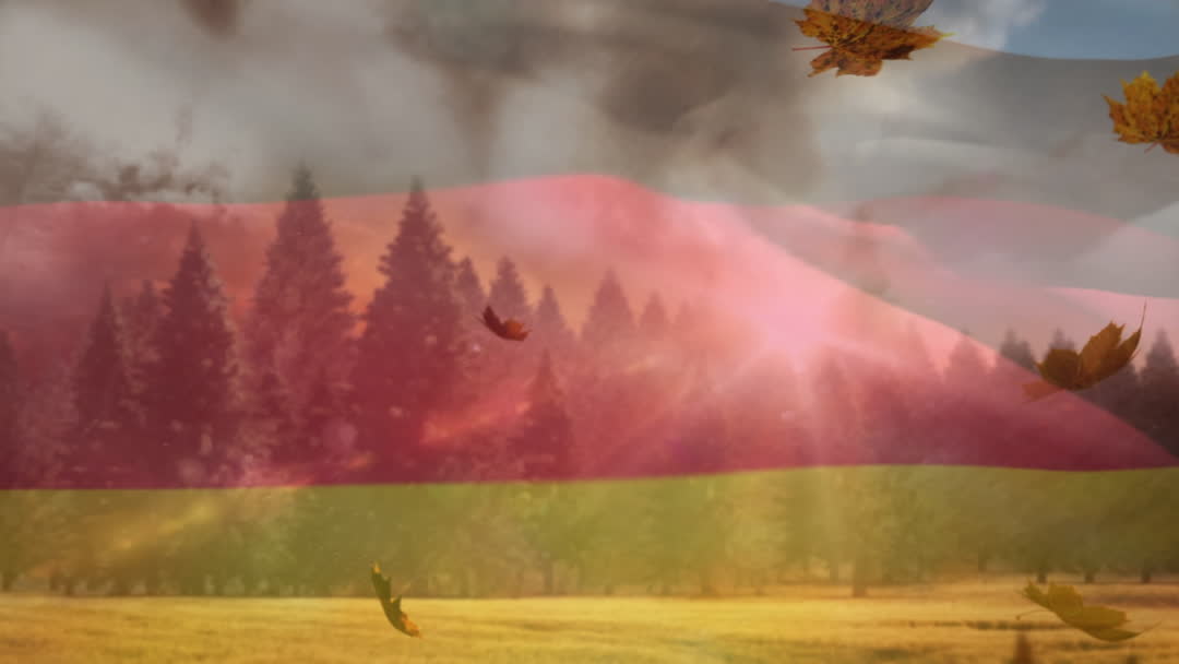 - Autumn Leaves Falling with USA and Germany Flags Overlay