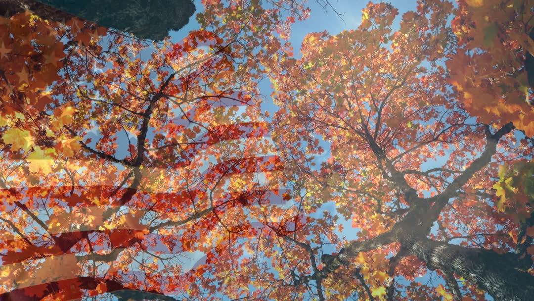 Autumn Leaves Overlay US Flag Double Exposure Video