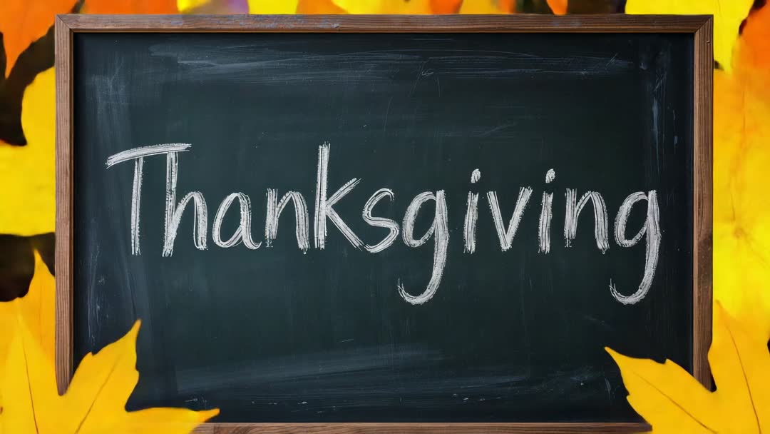 AI Generated Image. Featuring slow parallax pan across wooden-framed chalkboard with handwritten 'Thanksgiving' message while golden autumn leaves are drifting across foreground. Chalk smudges and subtle tray marks adding handcrafted, rustic feel. Neutral dark board providing strong contrast for white chalk lettering and text overlays. Usage ideas: - Opening clip for holiday cooking, recipe, or lifestyle videos - Social media greeting clip for Thanksgiving marketing and email campaigns - Background loop for restaurant menus, event promotions, or retail displays - Title or lower-third backdrop for livestreams and virtual events - Animated card for greeting messages, invitations, or seasonal ads Technical notes: - 16:9 horizontal frame with parallax-friendly composition - Soft-focus foreground leaves with sharp chalkboard lettering - High contrast, warm color palette conveying autumn mood - Loop-friendly start and end frames for seamless repetition - Suitable for color grading, text overlay, and soundtrack syncing Delivery suggestions: render as short clip or loopable background, add gentle acoustic or piano track for warm tone, overlay branded message or call-to-action for promo use.
