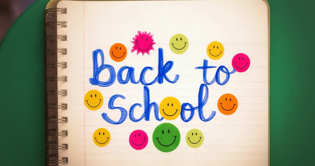 AI Generated Image. Vibrant notebook page is beautifully decorated with 'Back to School' text and colorful smiley face stickers. This engaging composition captures the excitement and creativity of returning to school. Perfect visual for educational content, classroom inspiration, or creative design materials aimed at young audiences. Ideal for school promotions, learning tools, and stationery advertisements.