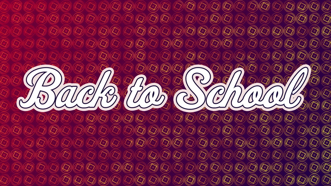 This vibrant and colorful 'Back to School' text over a geometric purple background is perfect for use in social media posts and digital marketing campaigns related to educational announcements. Its cheerful design makes it ideal for event promotions and school-related branding materials.