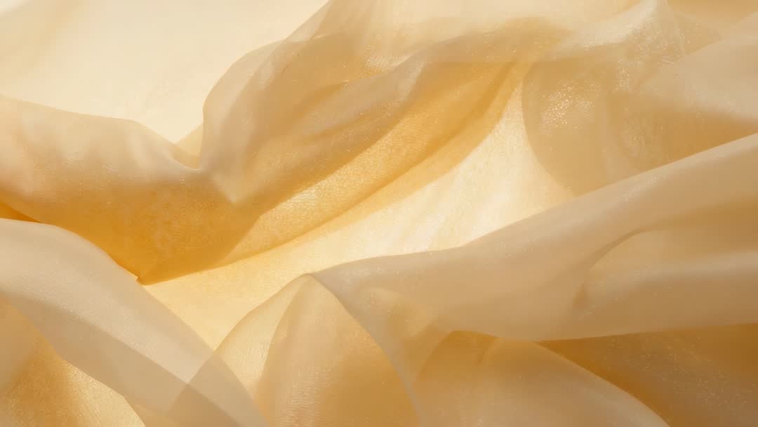 AI Generated Image. Backlit sheer beige organza fabric flowing across lightbox, creating soft translucent layers and warm glow. Closeup revealing delicate folds, subtle shimmer, and smooth textile texture. Slow motion loop emphasizing fluid movement and gentle shadows for calming visual rhythm. Ideal for fashion films, beauty commercials, product packaging reels, website hero backgrounds, social media content, and interior design mood videos. Useful as overlay for title sequences, texture fills for branding, or ambient visuals for wellness and spa promotions. Available in high resolution loop-friendly format for seamless playback and color grading.