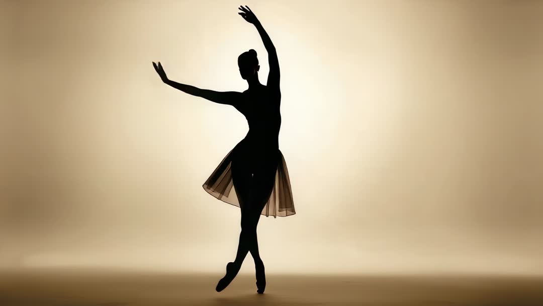 AI Generated Image. Video clip showing ballerina executing arabesque and rotating into turns on pointe with tutu gently fluttering, backlit by warm golden light sculpting elegant silhouette. Composition emphasizing clean negative space and flowing limb lines, offering strong visual contrast for slow-motion playback and freeze-frame grabs. Mood feeling dramatic, refined, and timeless, with focus on form, balance, and controlled rotation. Ideal uses include promoting ballet productions, advertising dance academies, creating hero banners for performing arts websites, supporting editorial features on dance technique, illustrating choreography tutorials, enhancing social media reels and stories, and providing cinematic backgrounds for title sequences or commercials. Tips for editors: apply subtle slow-motion for emphasis, crop for vertical formats for reels, overlay typographic headlines on negative space, match color grading to warm sepia tones, and loop short segment for ambient stage background.