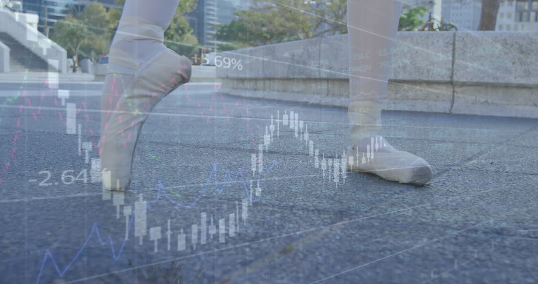 - Ballet Dancer Against Financial Data Overlay in Urban Setting