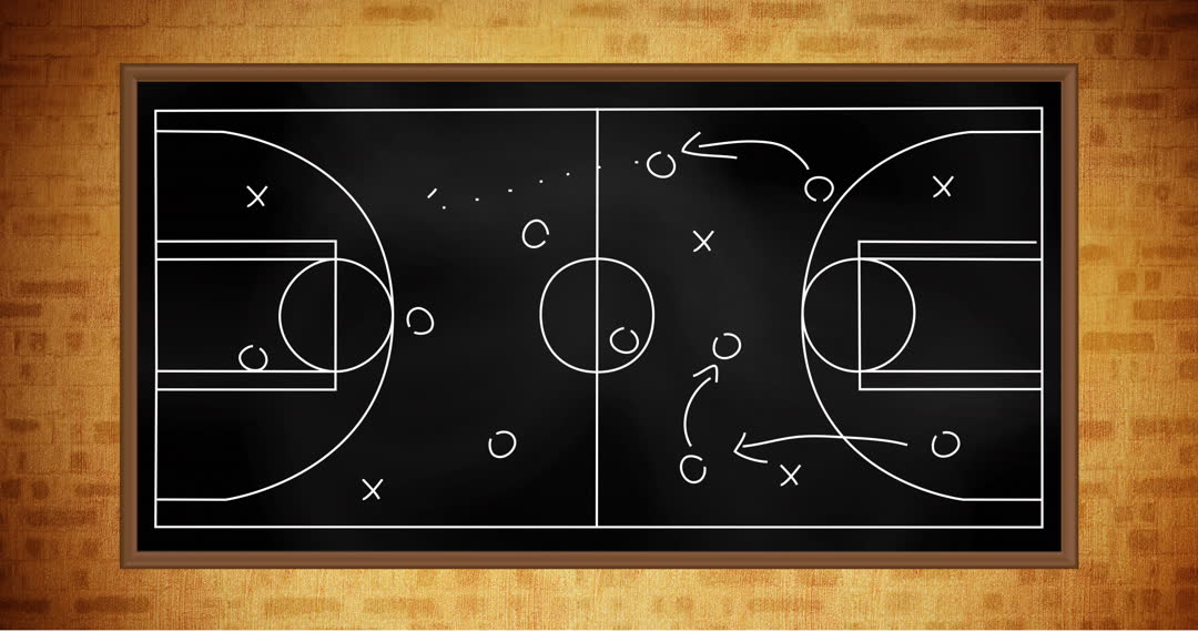 - Basketball Tactics Board with Strategy Diagrams on Blackboard