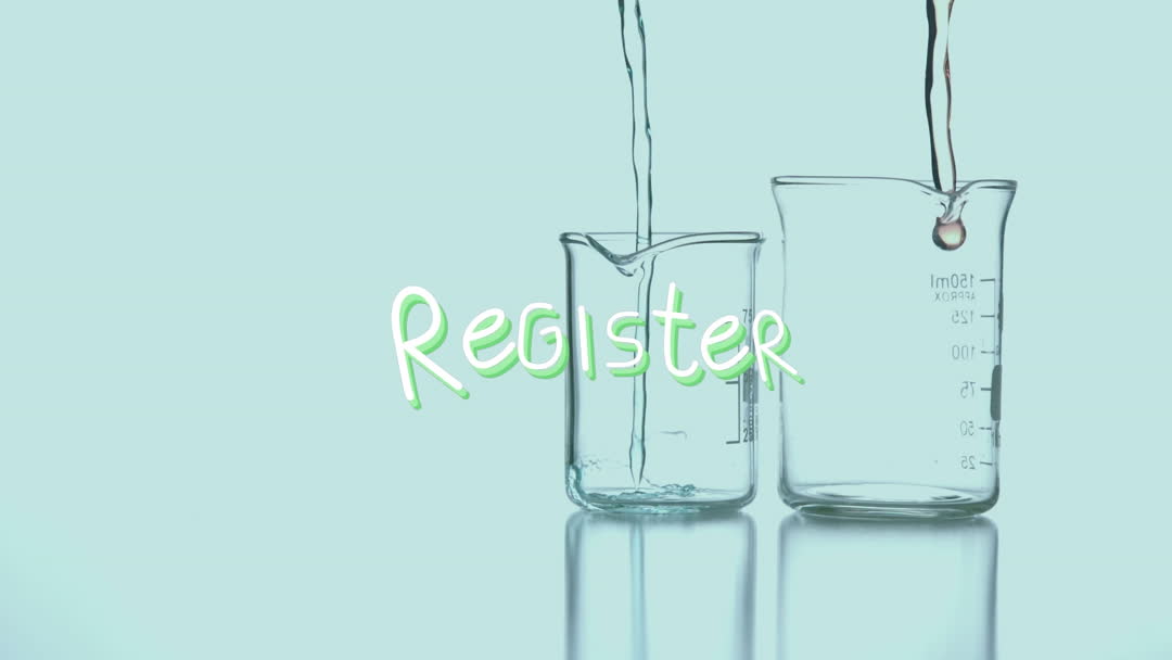 This video showcases a seamless animation with liquid pouring into beakers, enhancing the scientific theme accompanied by a 'Register' text. Ideal for advertisements in scientific invitations, academic blogs, or educational social media campaigns seeking dynamic engagement.