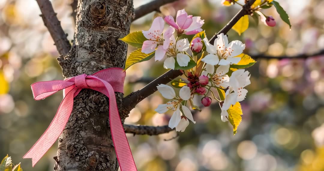 - Beautiful Blossoms with Ribbon Tied in Tranquil Orchard