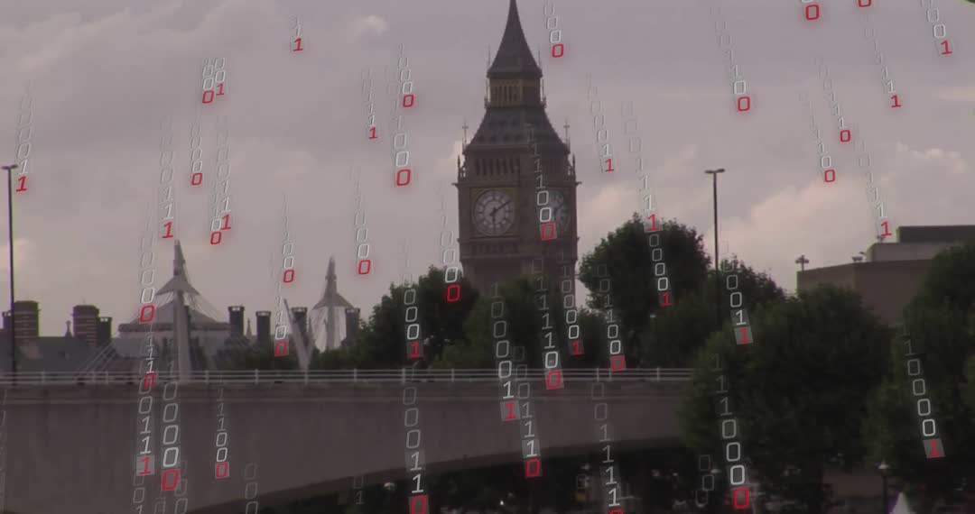 - Binary Code Overlay on Big Ben Architecture Digital Innovation Theme