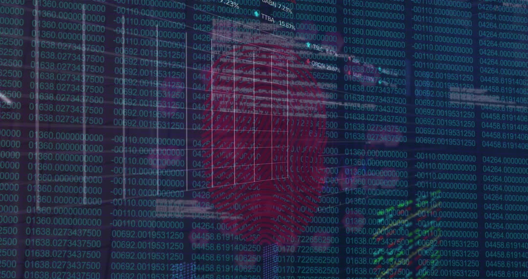 Visual combination of a biometric fingerprint with digital financial data visualization represents themes of secure data processing and technological advancements in security systems. This is ideal for illustrating concepts in cybersecurity, data encryption, financial technology services, and global business solutions that emphasize secure and advanced biometric authentication systems.