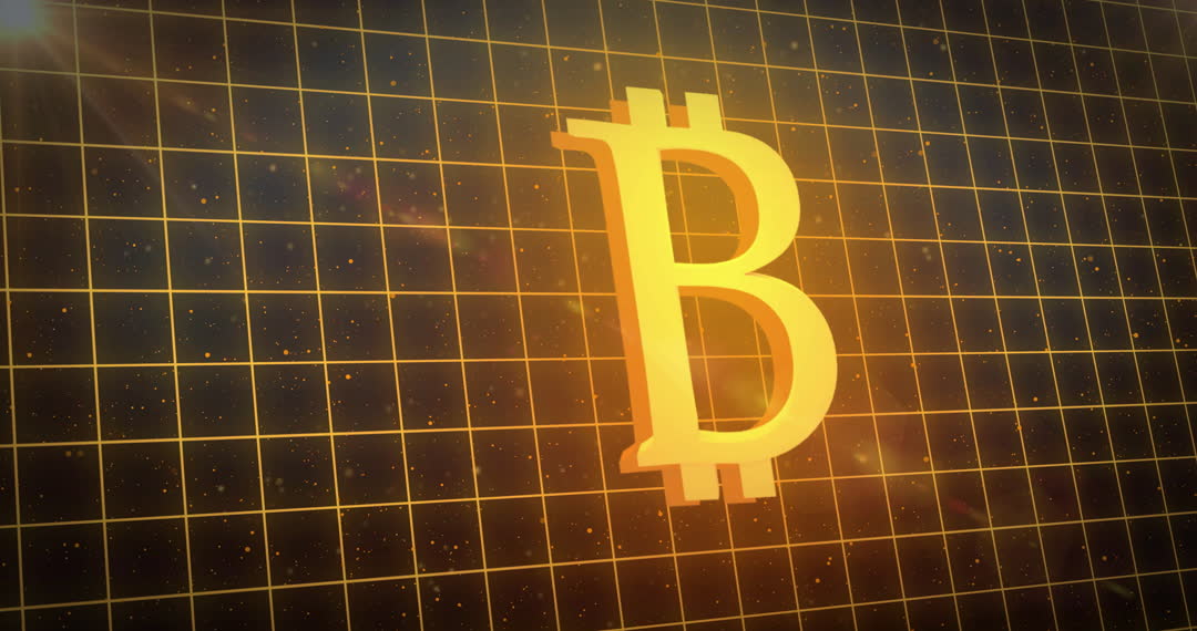 - Bitcoin Symbol on Abstract Digital Grid Background