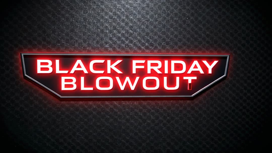 - Black Friday Blowout Neon Badge Animating with Red Glow Sweeping Right on Metal Wall