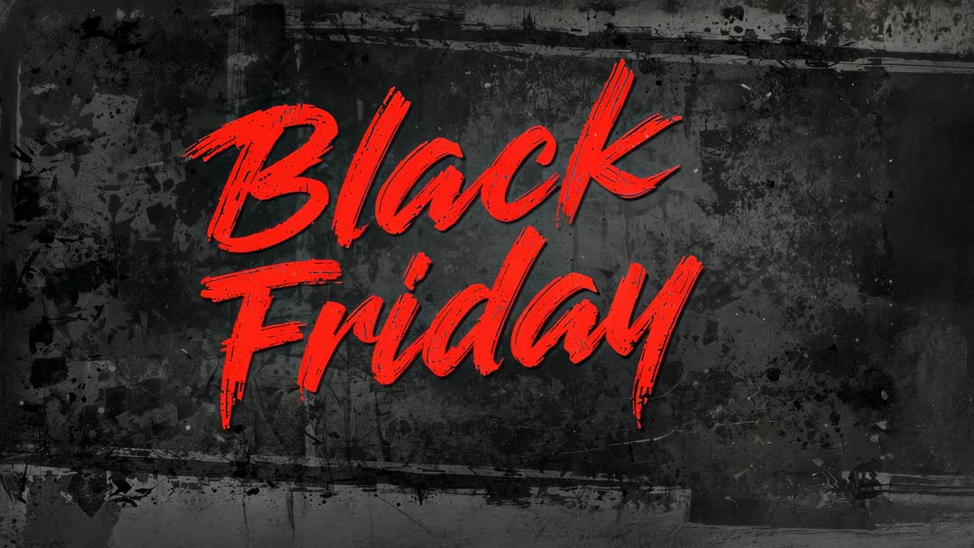 AI Generated Video. Featuring bold red brush-script reading Black Friday on distressed black panel, delivering high-contrast edgy aesthetic for sale campaigns. Working as title card or opener for promotional videos, social ads, livestream banners, and in-store displays. Providing texture-rich grunge background allowing logo or additional text overlays while preserving dramatic atmosphere. Suggesting uses include crafting countdown clips, email headers, landing page hero loops, TV spots, social carousel videos, and store window displays. Allowing easy color and contrast adjustments for brand matching and subtitle integration. Appealing to retail, ecommerce, fashion, electronics, and clearance marketing teams looking for bold seasonal promo visual.