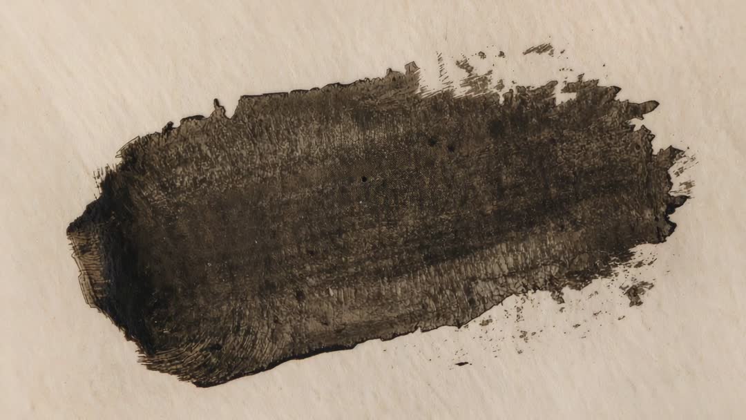 - Black Ink Brushstroke Settling on Off-White Paper Closeup Texture Bristle Marks