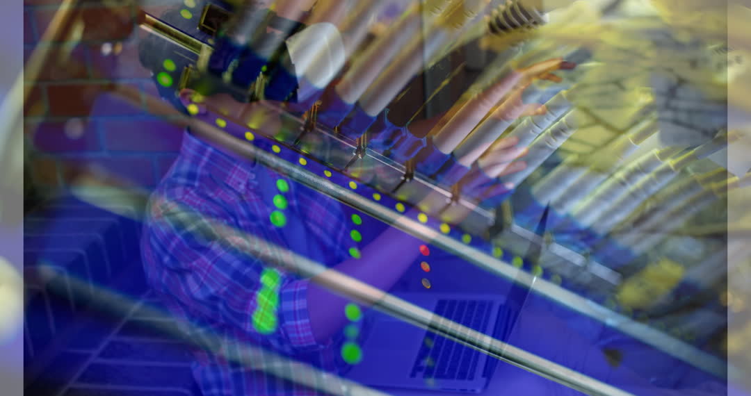 Image portrays integration of virtual reality with network technology, featuring a boy using a VR headset with an overlapping view of a server room. Represents themes of digital learning and technological exploration. This visual is ideal for use in educational and technology-related content, emphasizing the interplay of connectivity and immersive virtual experiences.