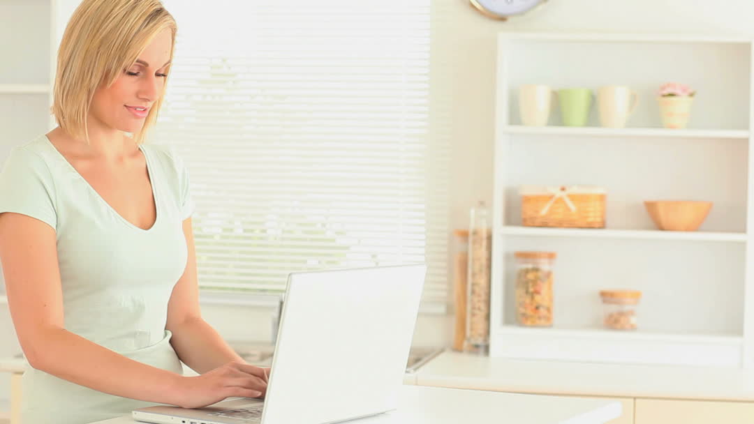href="https://pikwizard.com/video/blond-woman-working-on-laptop-in-bright-kitchen-setting/7088fa6c35e9f37ccba7f843e3ece5f5/"