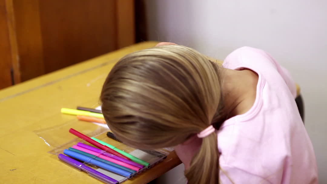 Blonde Child Engaging in Coloring Activity with Markers Video