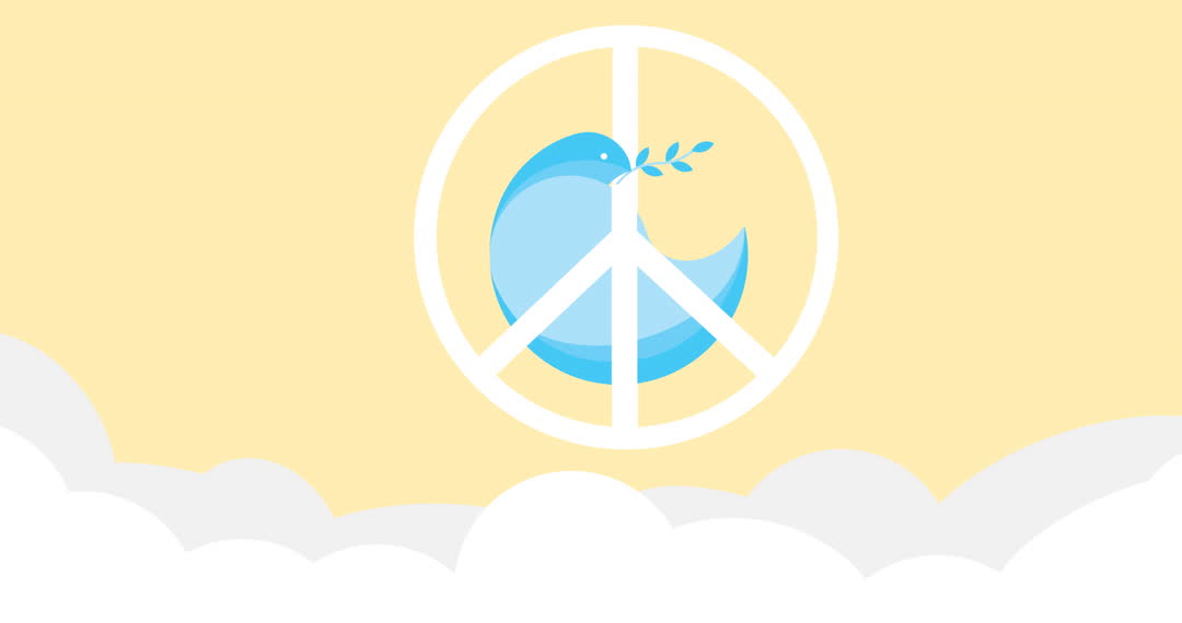 Featuring a blue bird holding an olive branch inside a peace symbol, this video exudes themes of tranquility and harmony, set against a pastel yellow background. Ideal for use in promoting events for the International Day of Peace, educational materials on peace and unity, or as a decorative wall mural for an inspiring and calming presence.