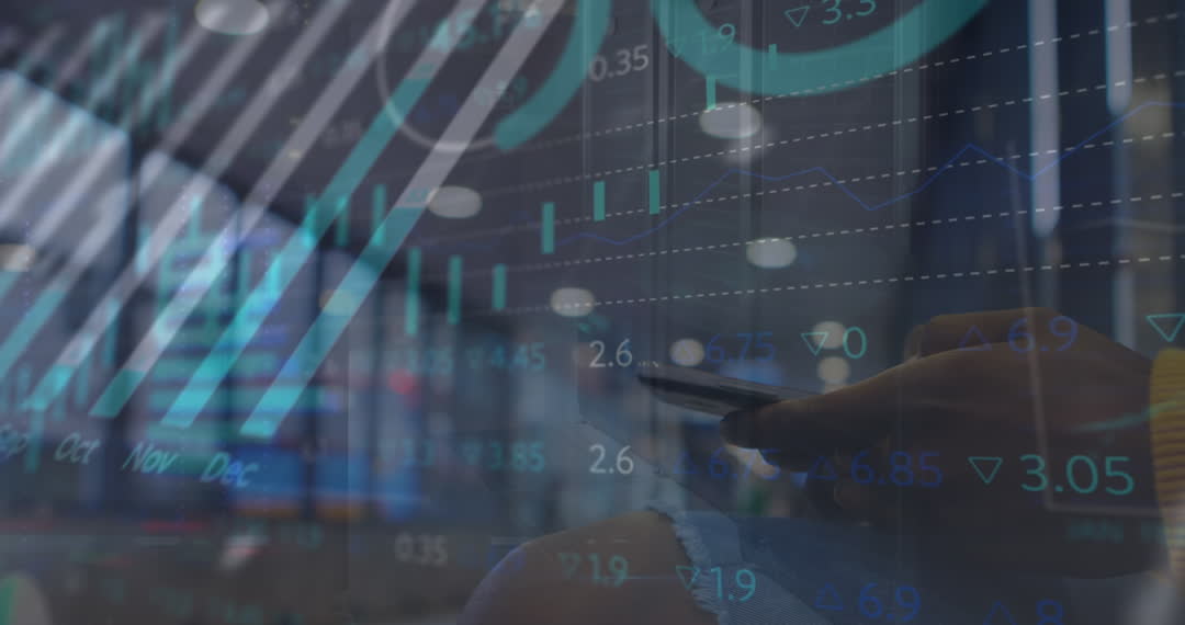 - Blurred Business Charts Overlay with Smartphone Interaction