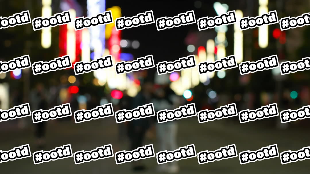 Rich-colored blurred city lights creating a bokeh effect set as a backdrop for multiple 'ootd' hashtags. Ideal for digital marketing, social media themes, urban fashion promotions, and creative storytelling voicing style or trends.