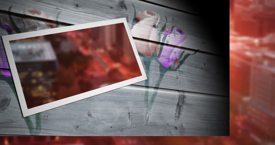 Blurred Cityscape on Photo Frame with Floral Wood Background Video