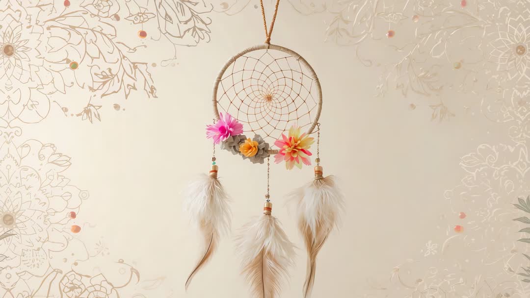 - Bohemian Dreamcatcher with Colorful Flowers Swaying Gently