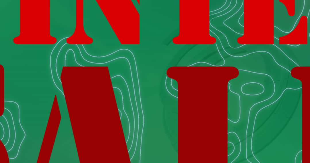 This graphic features large, bold red text prominently positioned on a green background superimposed with topographical map lines, creating a vibrant digital design ideal for modern and abstract applications. Its dynamic use of color and pattern makes it suitable for advertising, poster creation, digital projects emphasizing motion and geometry, and social media content coded towards creativity and emphasis.