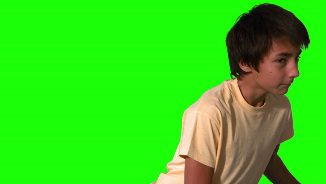 - Boy Having Fun Practicing Football Headers Against Green Screen