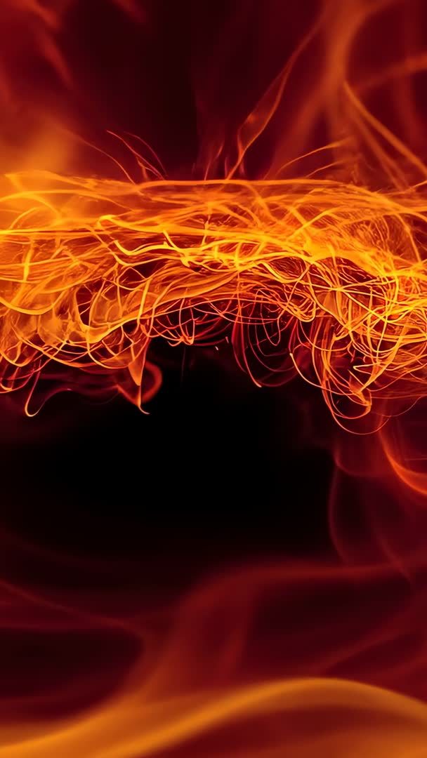 AI Generated Image. Showing braided flame filaments weaving over dark void and settling into smoky ember haze. Featuring warm orange and deep red tones, high contrast, and fluid motion that draws eye toward center. Leaving dark center area for text or title overlay and upper band for logo or lower-third graphics. Working well for vertical social media reels, app intros, music visualizers, cinematic title sequences, event promos, VJ loops, and abstract motion backgrounds. Looping for seamless playback and suitable for mood-driven design, advertising, streaming bumpers, and creative transitions.