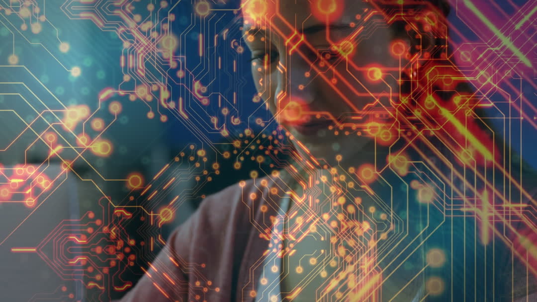 Brain Computer Interface Technology Concept with Circuit Overlay Video