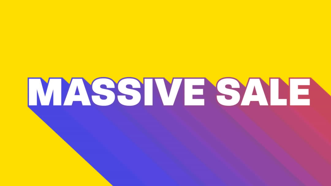 Massive sale announcement paired with eye-catching, vibrant graphics and colorful text draws immediate attention. This dynamic concept can be employed as digital advertising material for promoting hair beauty products, technology-related sales, or any vibrant promotional campaign looking to capture a fun and modern vibe.