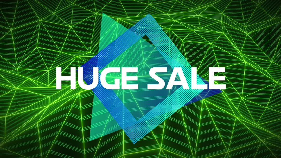 This colorful neon animation is ideal for promoting retail sales and discounts. The bold 'Huge Sale' text grabs attention and can be used in advertisements, social media promotions, or ecommerce websites. The vibrant pattern keeps viewers engaged, effectively communicating urgency and excitement about promotional events.