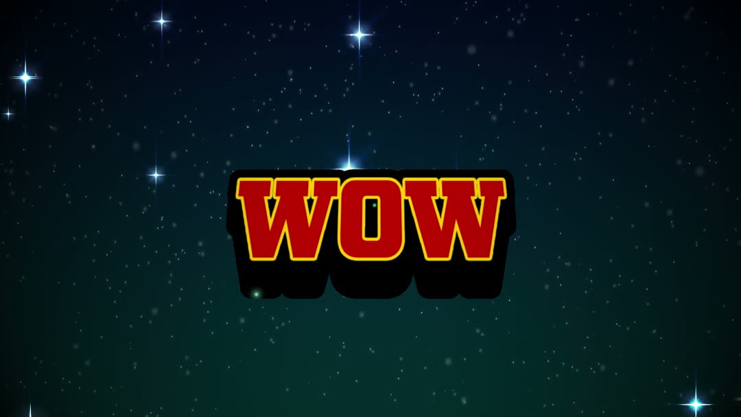- Bright Starry Sky with Bold 'WOW' Text Animation