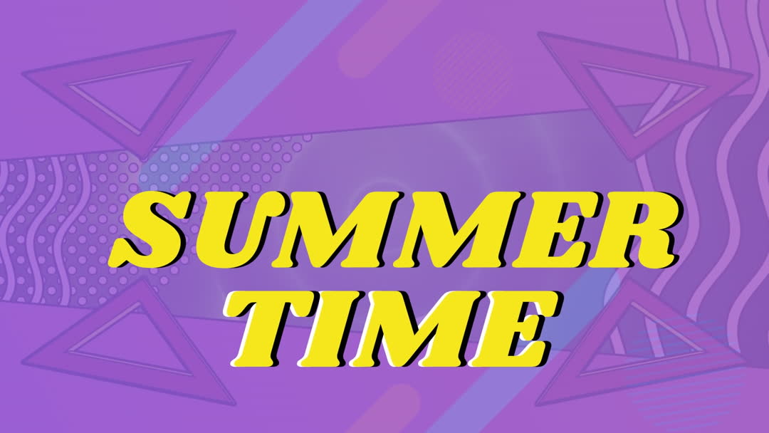 Cartoon graphic emphasizes lively summertime feel with geometric shapes. Use this design for summer holiday promotions, animated backgrounds, festive invitations, or fun-branded social media content.