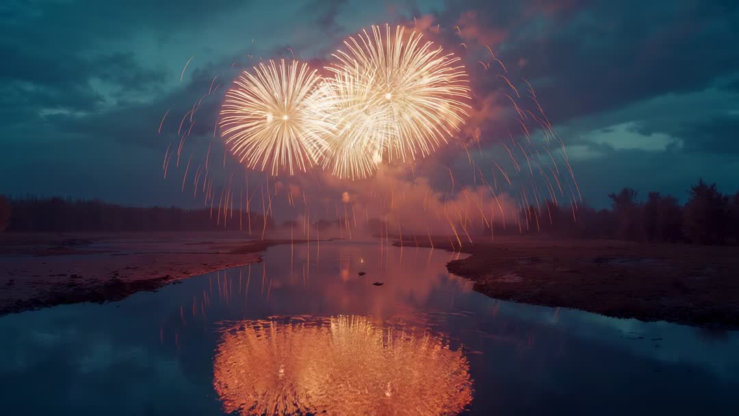 <a target="_blank" href=https://pikwizard.com/video/bursting-fireworks-reflecting-on-tranquil-river-at-dusk/61908cd067810b215b8a90666ac45390/>PikWizard</a>