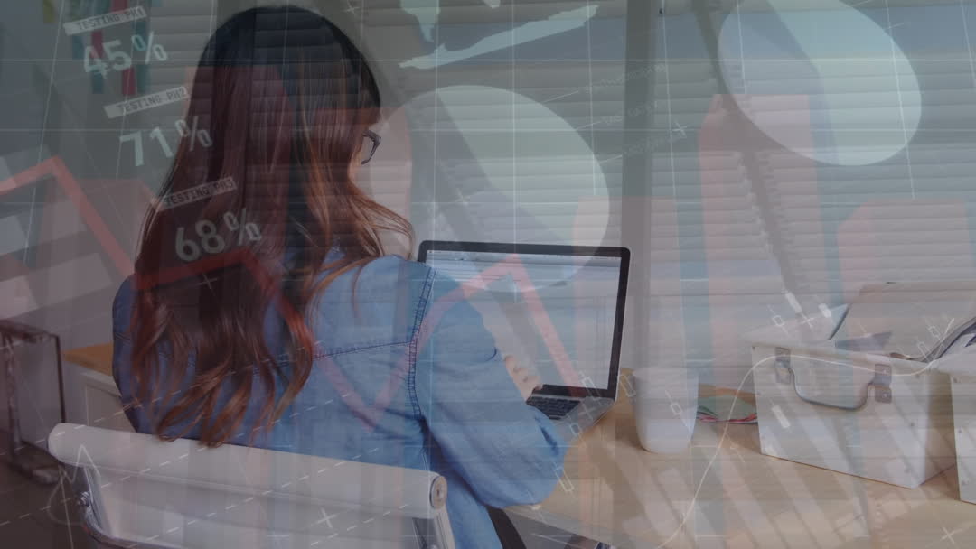Business Analysis Concept Overlay with Woman on Laptop Video