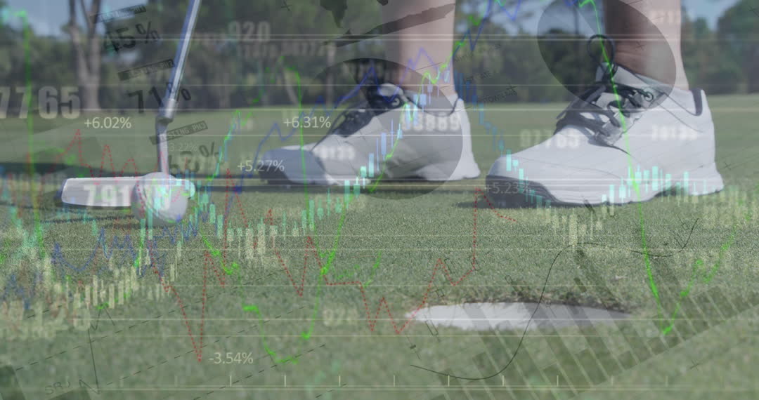 - Business and Sport Fusion: Golfer with Financial Data Overlay