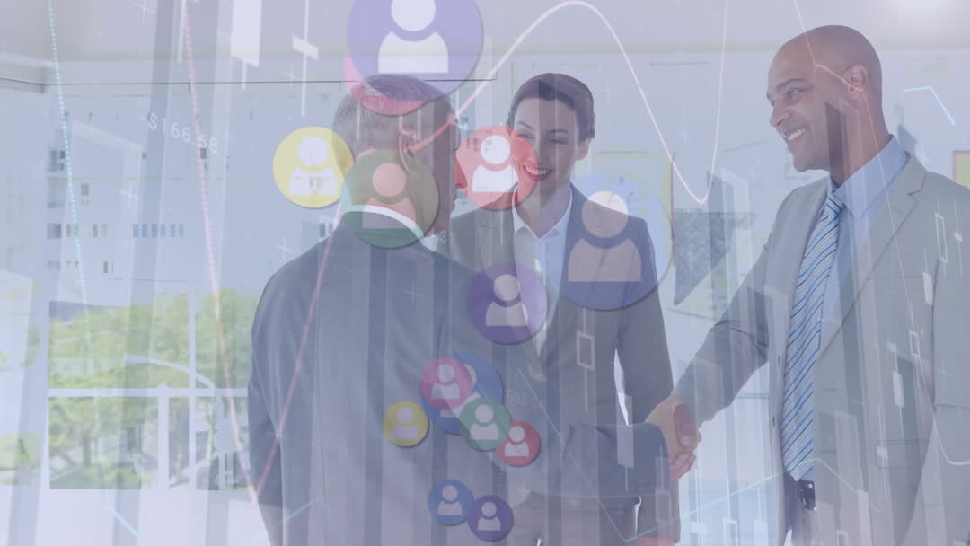 Business Deal with Data Visualizations and Social Icons Overlay Video