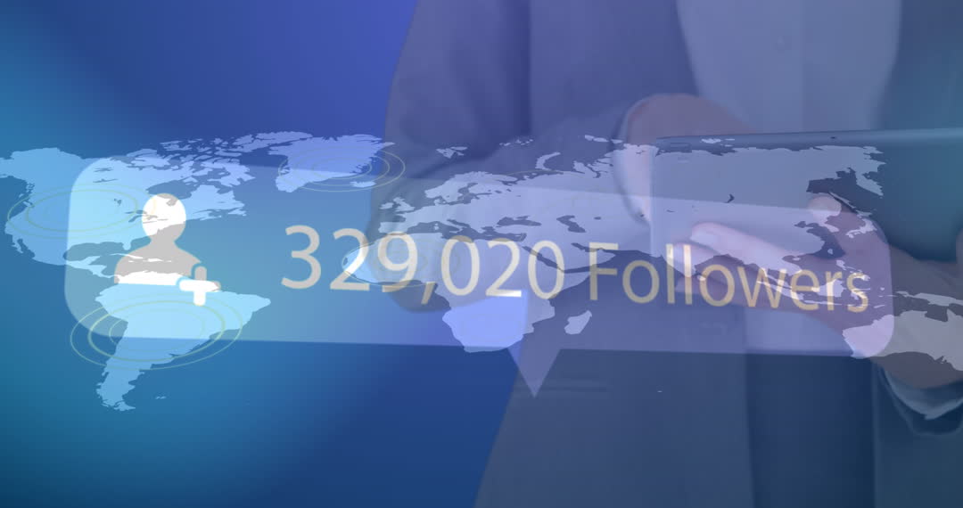 Visual illustration combining concepts of global business growth with digital follower engagement. Ideal for uses in modern business presentations, social media influence studies, and discussions on digital expansion strategies.